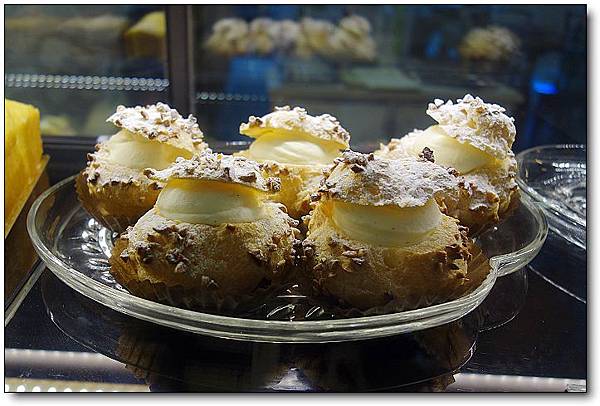 點綴著鄉村風的可愛甜點店,就像是偶像劇裡的場景似的,只有三張桌子的小店,滿座也只有八人可以在店內享用點心,入口處的桌上也有不少常溫蛋糕可以挑,除了滿滿的蛋糕櫃,店內也有茶飲、咖啡可點,享受下午茶剛剛好!挑了拉拉山水蜜桃蛋糕捲、雙果綠茶捲、綜合水果捲等,新鮮甜美的果香讓人幸福,但我最喜歡的是脆皮泡芙,餡兒是讓人留戀的香濃卻不膩口!
