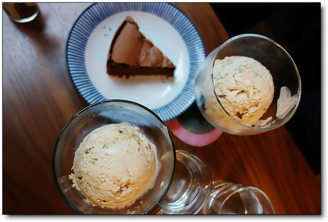Beccafico Caffé絕對是我最愛的甜點店之一!很愛以沙巴雍、打發奶油跟蛋白霜冷凍而成的"半凍冰糕",冰涼又多層次的風味,與加了糖的冰搖咖啡很對味,姊妹挑了費拉拉巧克力蛋糕配熱巧克力,這個濃上加濃的的組合有點出乎我意外,但好適合冷冷的天氣,吃得讓人陶醉,也是另一種有趣的搭配!